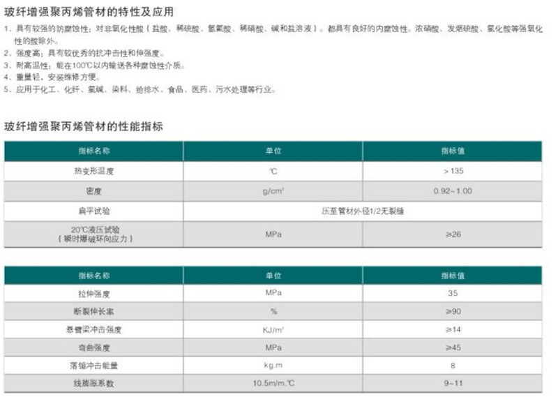 與傳統的金屬管材相比較,PP管具有較強的耐酸堿耐腐蝕性能,對多數非氧化性酸都具有良好的耐腐蝕性;除一些強氧化性酸。FRPP材質有較優良的抗沖擊性和拉伸強度。PP管耐高溫,重量輕,運輸、安裝、維修方便,性價比高。